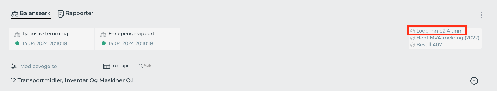 Sjekk om kommunikasjonen fungerer som den skal ved å navigere tilbake til selskapets oversikt i Account Control og deretter sjekke om teksten har blitt endret fra Logg inn på Altinn til Altinn Import om du er logget inn i Altinn fra før i nettleseren, eller ved å logge inn på Altinn via knappen og sjekke at teksten har blitt endret når du blir dirigert tilbake til Account Control etter innloggingen i Altinn.