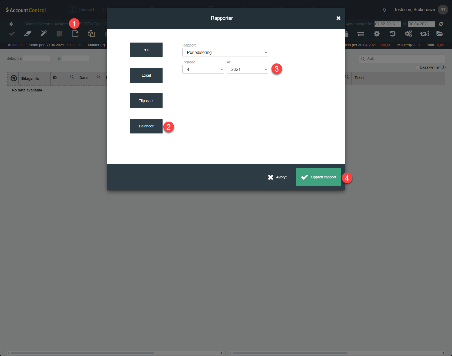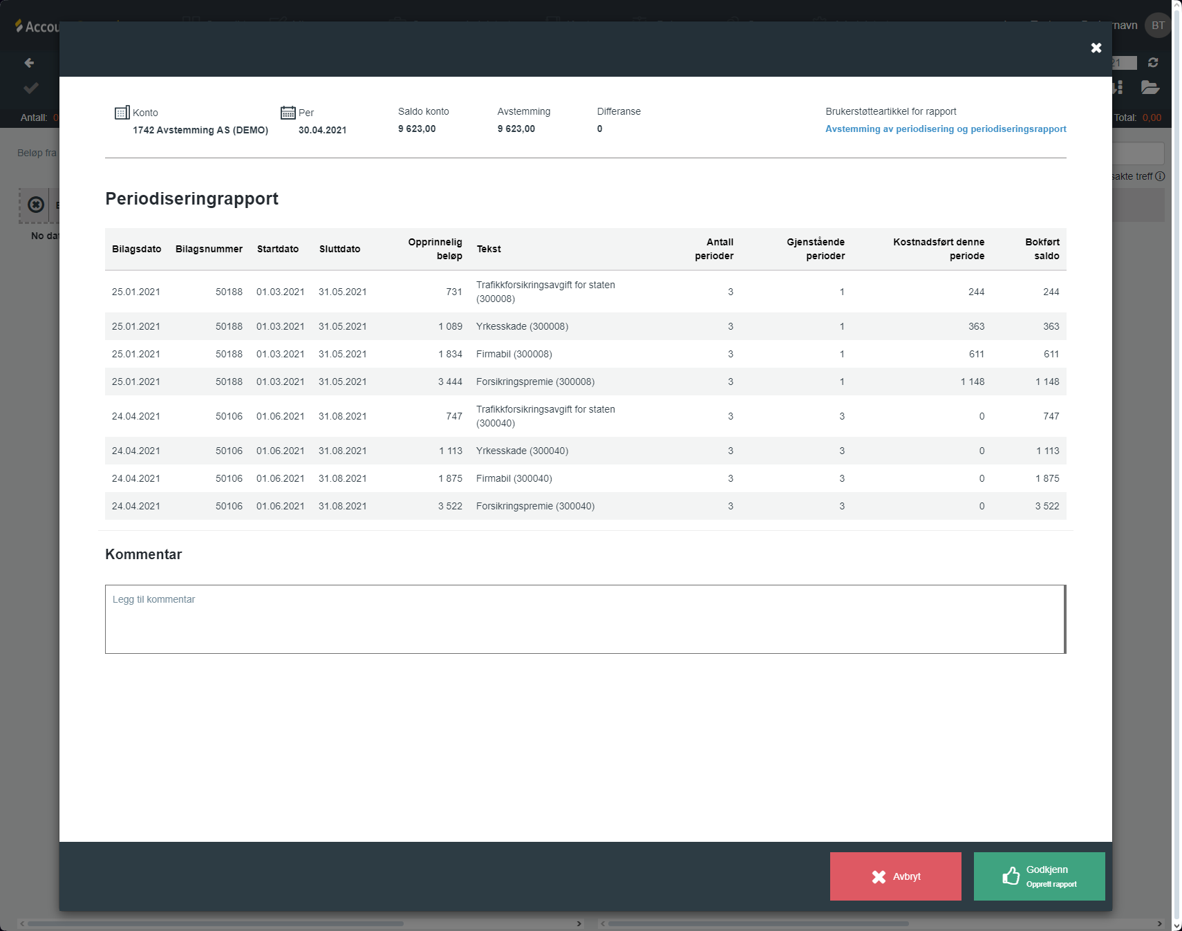 Oppretting av periodiseringsrapport og avstemming av transaksjoner