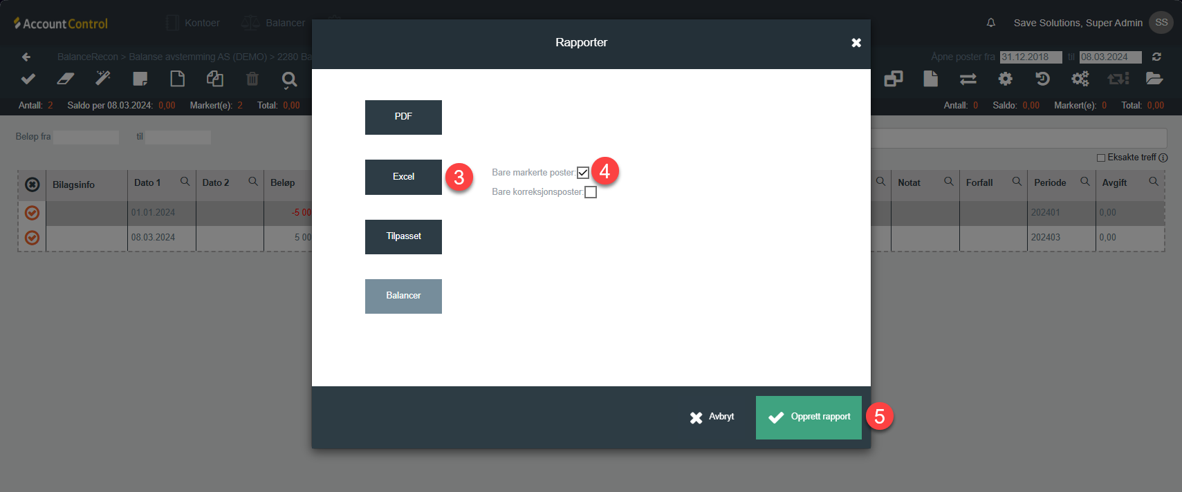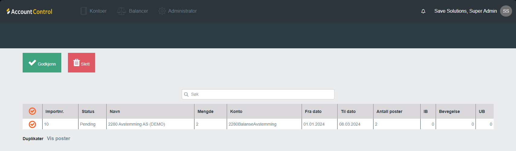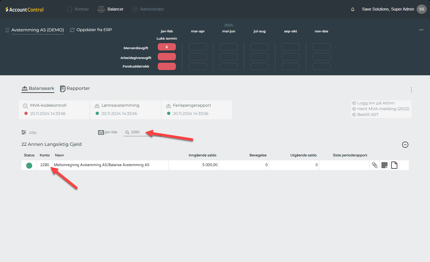 - Avstemming av mellomregningskonti hvor transaksjoner for tilhørende konti hentes fra Account Control