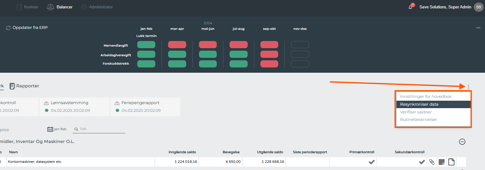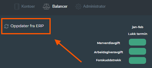 Trykk på "Oppdater fra ERP", dette vil hente inn nyeste data fra regnskap til Account Control.