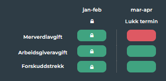 Klikk for å se at terminen blir låst. Alle rapporter må være godkjennt og grønn for å kunne lukke terminen.